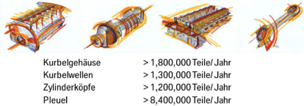 Abb. 1: Motorenkernkomponenten, produziert in der mechanischen Fertigung (Stückzahlen von 2016) [4]