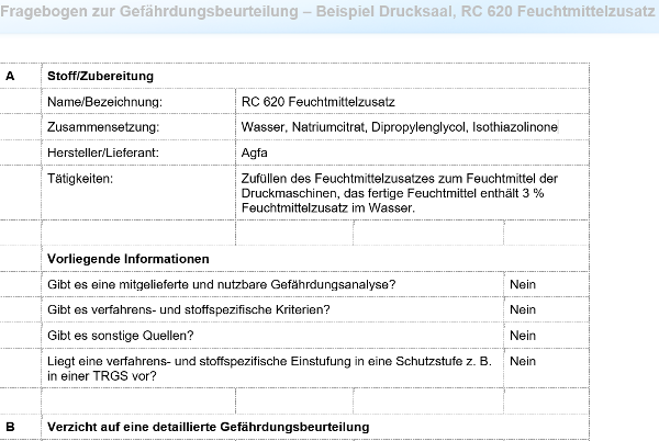 Dieser Beitrag liefert ein Beispiel für eine praxisorientierte Gefährdungsbeurteilung, wie sie in einer Druckerei durchgeführt wurde. Das Beispiel zeigt, wie mit möglichst geringem Aufwand die durch Gefahrstoffe resultierenden Gefährdungen tätigkeitsbezogen ermittelt und die erforderlichen Arbeitsschutzmaßnahmen festgelegt werden können. Arbeitshilfen: von: |